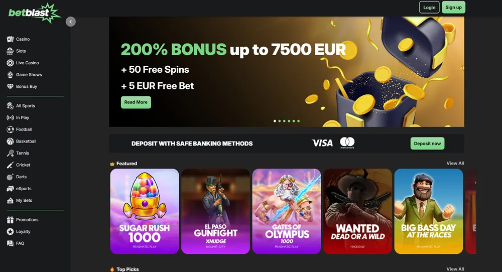 BetBlast biedt een brede selectie aan spellen van toonaangevende providers als NetEnt en Pragmatic Play. De site is overzichtelijk, laadt snel en ondersteunt directe stortingen zonder registratie. Dankzij de Trustly-integratie verlopen transacties veilig en razendsnel.