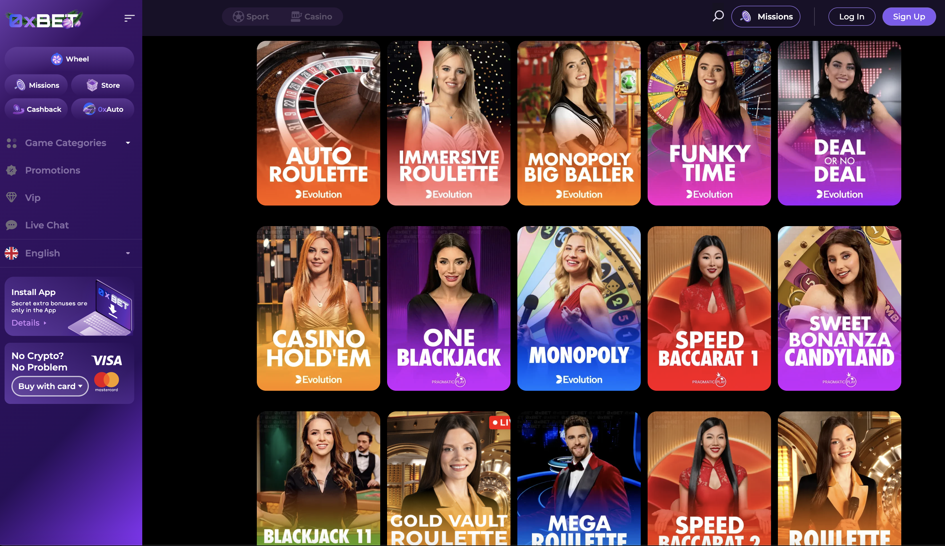 | Live casino | Evolution & Pragmatic Live |